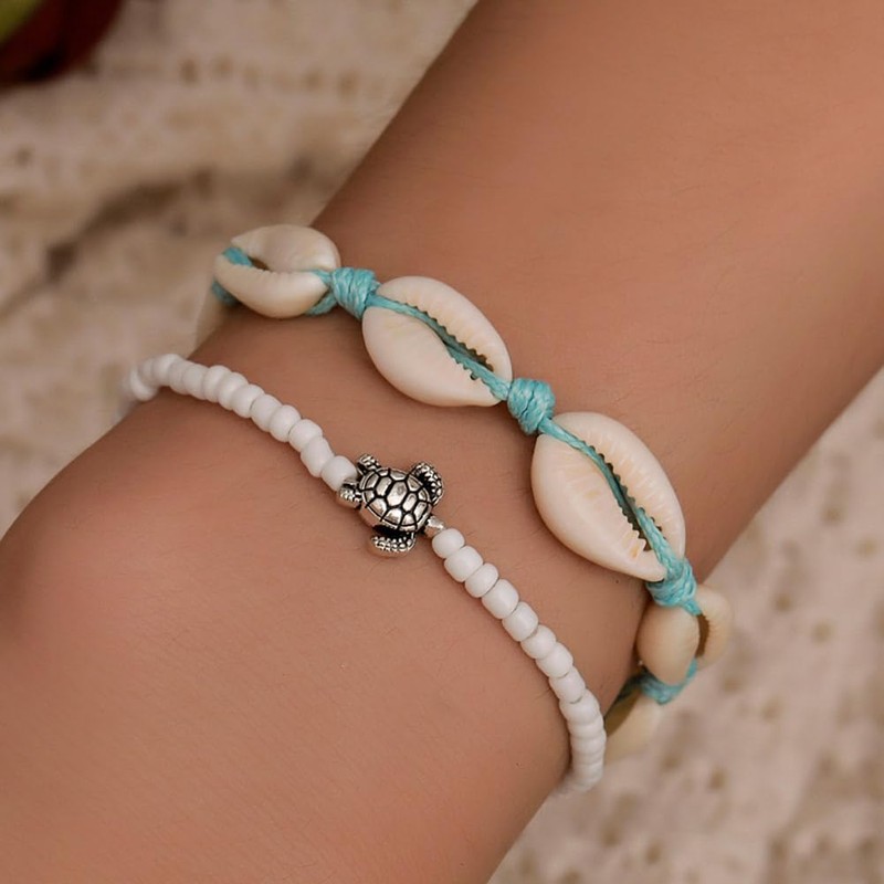 - 【You will get】: 4 psc shell anklet set. 2pcs shell anklet and 2pcs turtle charm bracelet. It is very suitable for summer wear and is easy to pair with dresses or other clothing.