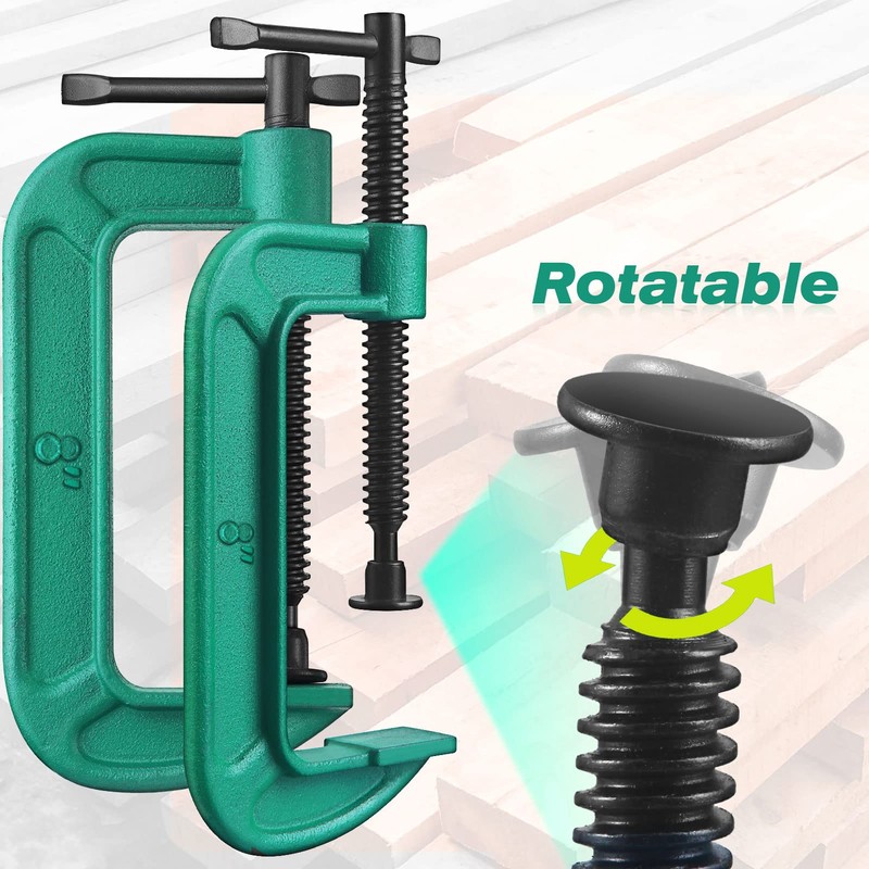 - Material - The C-clamp is made of a heavy-duty cast and provides a certain amount of strength, durable and anti-rust; The heavy-duty design of the clamp can ensure that the clamped object will not be easily deformed