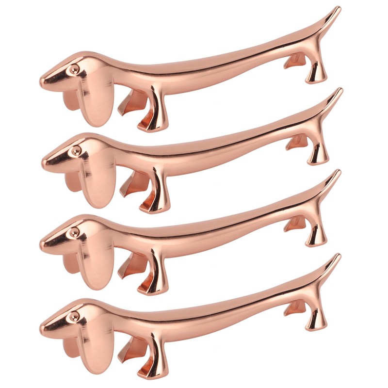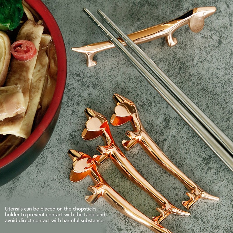4 PCS Chopstick Rest Zinc Alloy Plating Reusable Dinner Spoon Stand for Holding Spoon Fork Rose Gold Sausage Dog