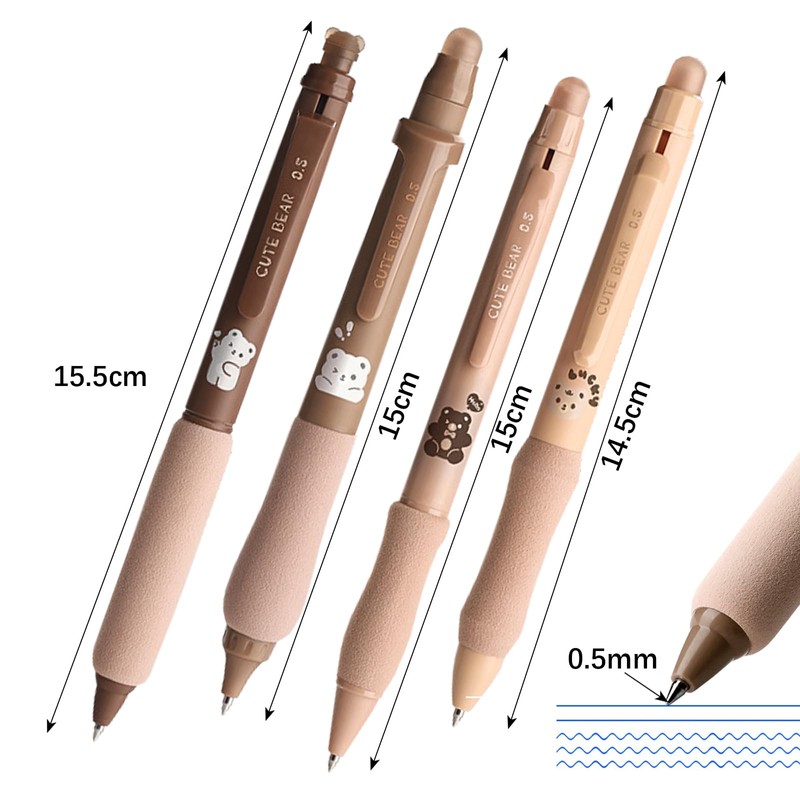 4 Pcs Cute Erasable Gel Pens CHUNLINLAODA Kawaii Erasable Pens 0.5mm Blue Erasable Gel Pens Erasable Rollerball Pens Retractable Erasable Pens for Kids Writing Stationary School Supplies (Coffee Bear)