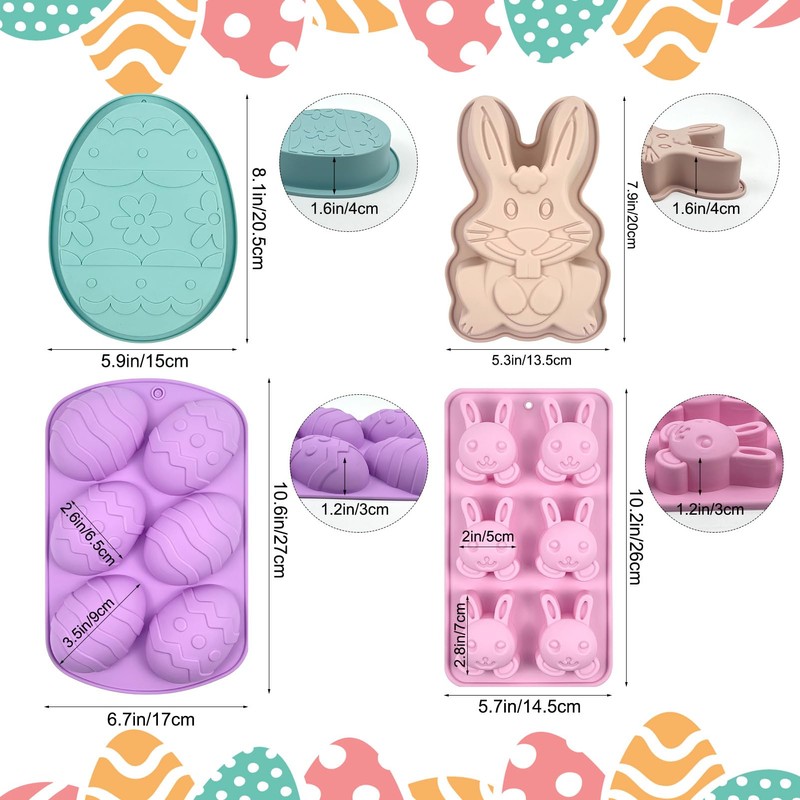 - Wide Application: Silicone mold are perfect for Easter cake, chocolate, muffin, sugar, jelly, ice cream, soap molds, and many types of dessert, also great to use it as a mold to mould clay. Suitable for many occasions, such as Easter themed kitchen, birthdays & baby showers etc