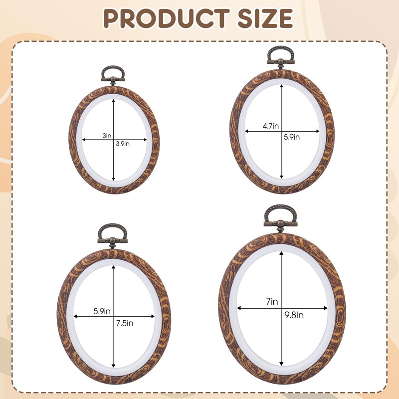 - 【Multiple Sizes】This set includes four sizes of oval embroidery hoops, measuring 3.9x3.1 inches (10x8cm), 4.7x5.9 inches (12x15cm), 5.9x7.5 inches (15x19cm), and 7.1x9.8 inches (18x25cm) respectively.