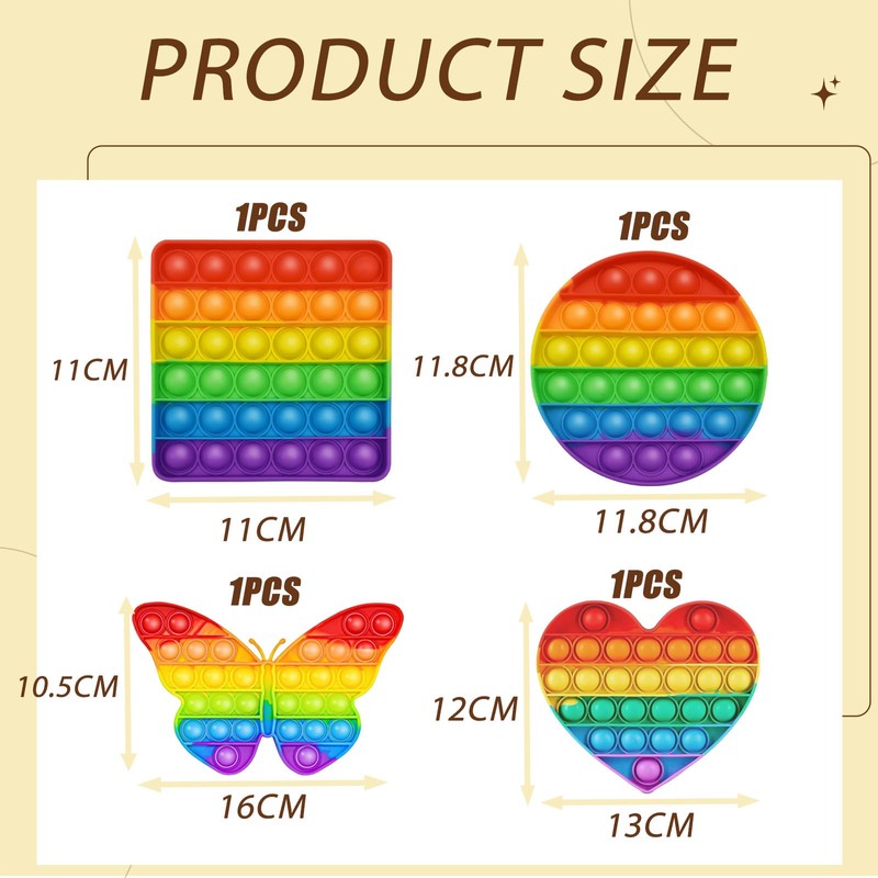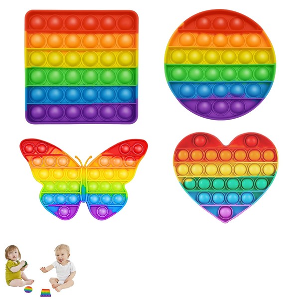 - Kids Fidget Toys Set: Includes one square, one round, one butterfly, and one heart-shaped silicone fidget toy; Perfect for ADHD autism kids, seeking stress relief and sensory stimulation; Ideal for learning, education, and anxiety management.