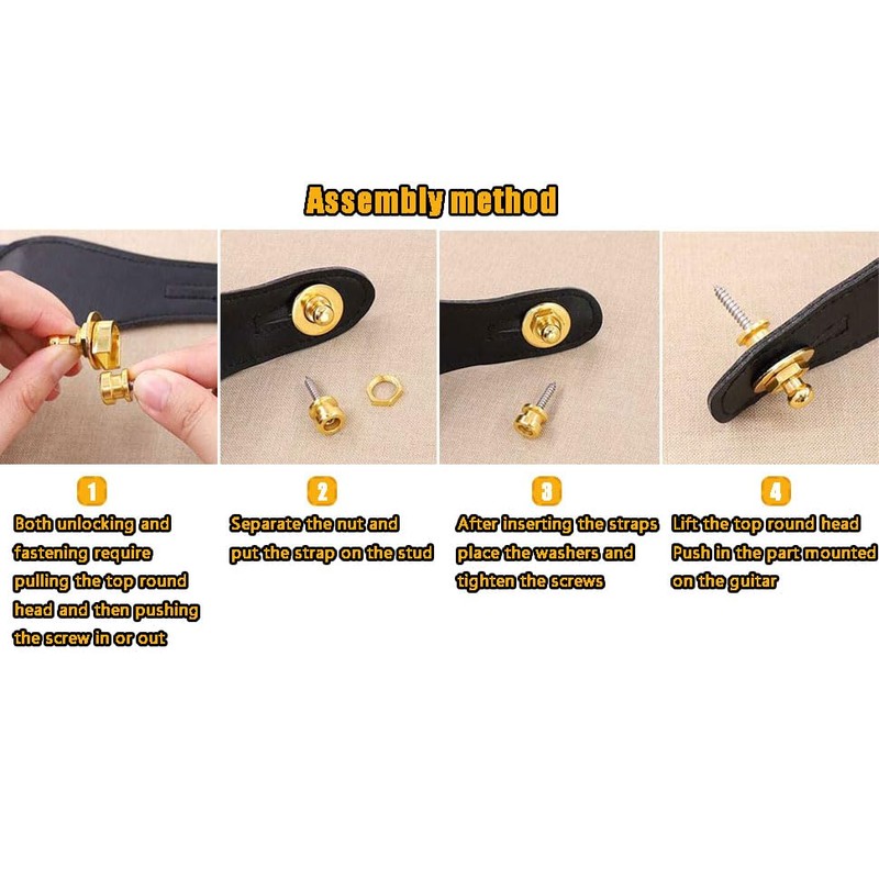 4 PCS Guitar Strap Locks Set and Buttons Security Quick Release Straplocks St...
