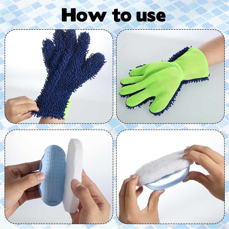 - Premium Quality Material Guarantee: Selected high quality chenille microfiber and breathable mesh to create our pool scrubber gloves, which are soft to the touch and safe for the skin. The cleaning brush is made of high-strength plastic and high-density sponge, which is durable and not easy to deform, and maintains excellent cleaning power, accompanying you to use for a long time.