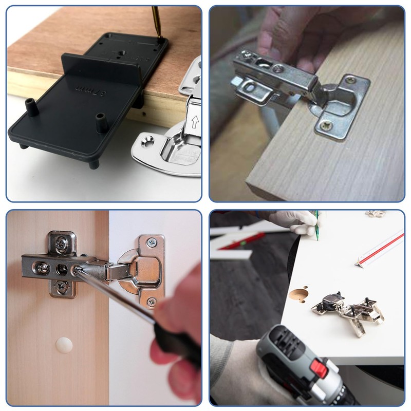 4 Pcs Hole Drilling Jig Template for Ø35mm,26mm and 40 mm Hinge Cup Mounting Plates Drawers and Eccentric Connecting Fittings of Ø25mm,20mm and 40mm Hole Diameter
