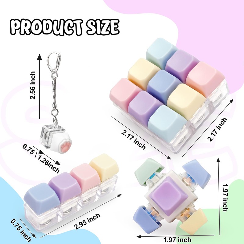 - 【Keychain decoration】Keyboard clicker fidget is equipped with a high-quality keychain, which makes the fidget keyboard have richer functions. It can not only be used for daily stress relief, but also can be used to decorate keys, school bags, home.