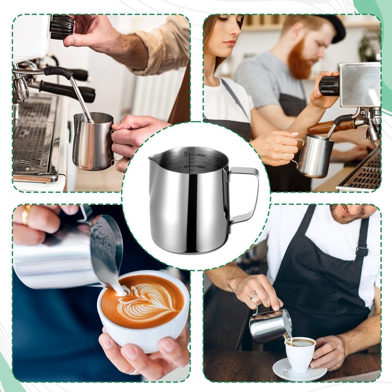 - Premium Material & Durability: Crafted with 304 stainless steel for superior rustproof and heat-resistant performance, our milk frothing pitcher withstands daily use in coffee shops while maintaining a polished appearance that complements professional espresso accessories