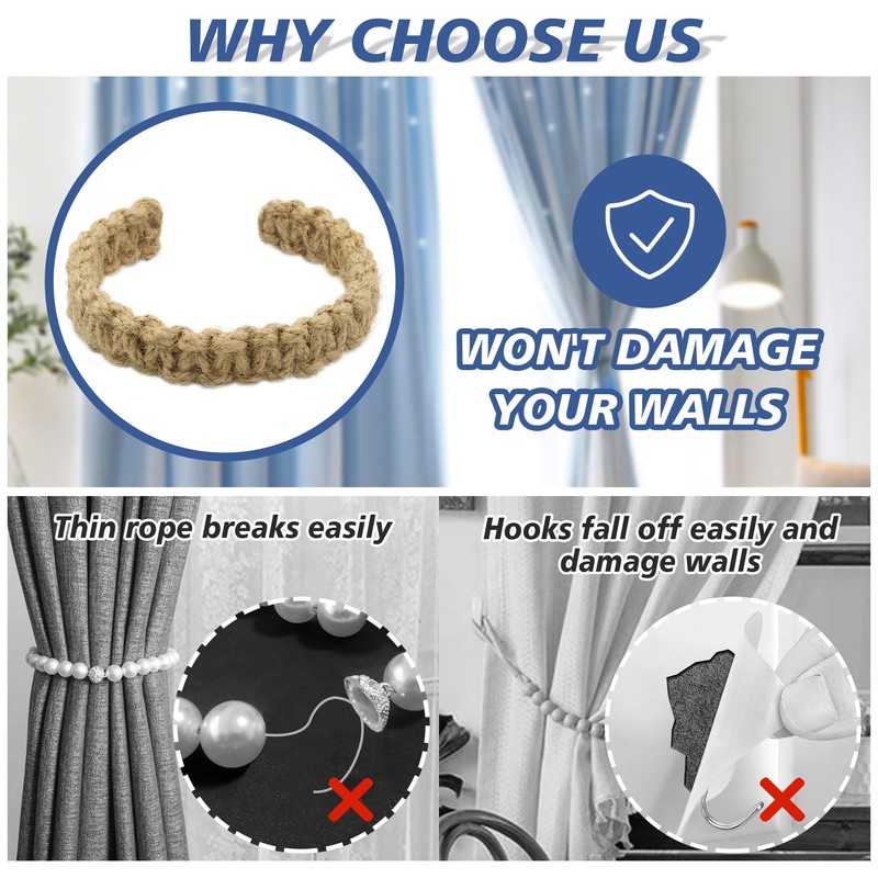 - 【 Premium Material 】 Curtain tieback is hand-woven with natural hemp rope, which is safe and reliable, environmentally friendly, and can be reused. It is very suitable for daily home decoration.