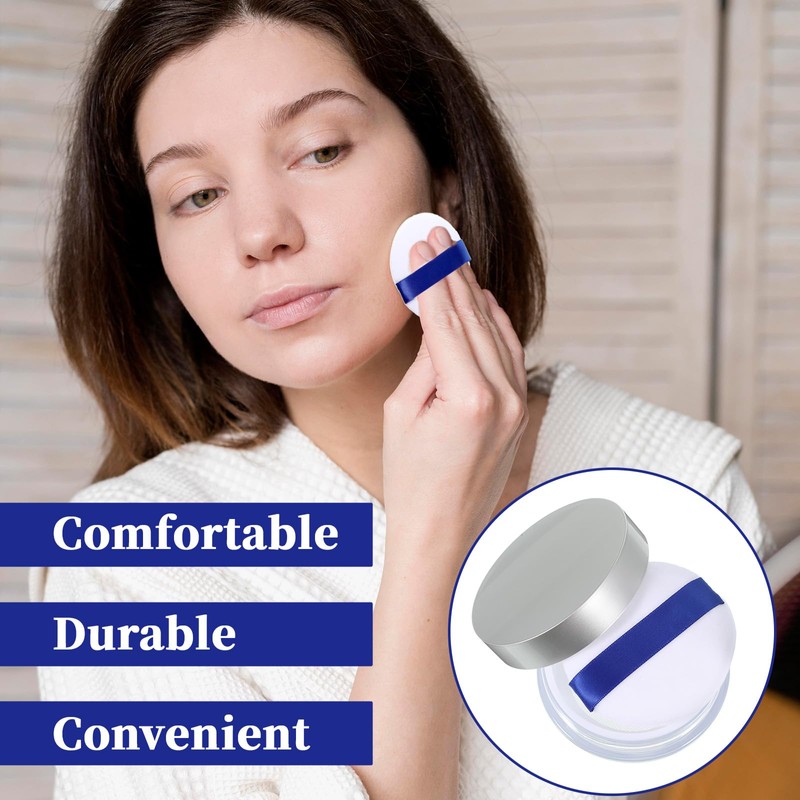 - Ergonomic Luxury Experience: powder puff boasts a curved contour that fits perfectly in hand for controlled application. includes 4 premium puffs that blend powder seamlessly, while the sleek silver-and-clear design elevates your vanity aesthetic with modern sophistication.