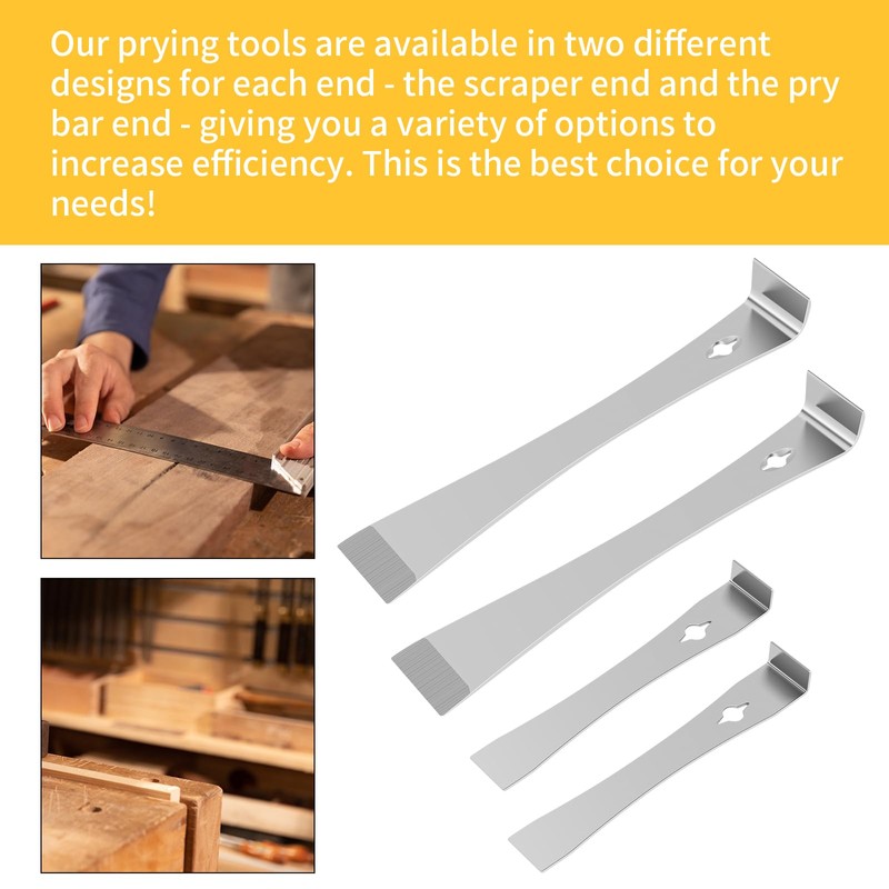 - 【Multifunctional Design】Our flat pry bars set comes with two different designs on each end, scraper end and pry bar end, giving you a variety of options for efficiency. It's the best choice for your needs