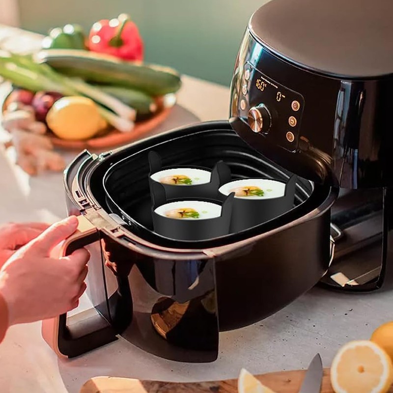 - 【Perfect Egg Poacher】Silicone egg poachers for air fryers are soft, flexible and non-stick, making it easy to remove food. 2 handles on both sides are easy to grip, withstand temperatures from -30°C/-22°F to 230℃/450°F, also suit for refrigerator, oven and microwave.