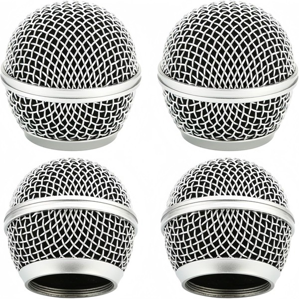 4 PCS Replacement Grilles for Shure Wired and Wireless SM58, Beta58A, SV100 Microphones, Microphone Grille Ball with Inner Foam, Steel Mesh Microphone Grille Head - Silver