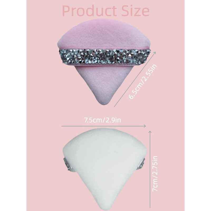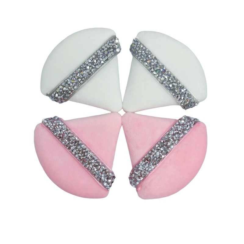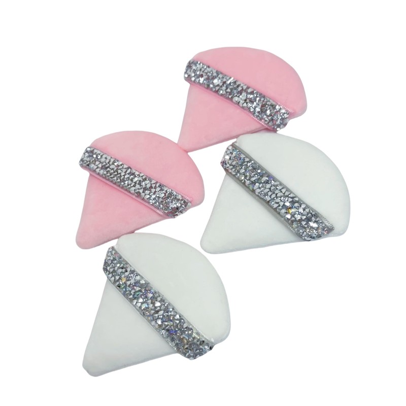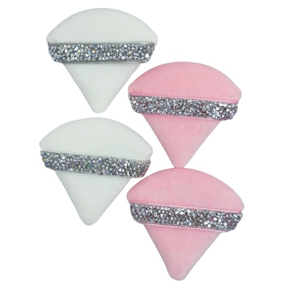 4 Pcs Rhinestone Powder Puffs, ButiFlora Triangle Super Soft Velvet W/Rhinestone Band for Both Dry and Wet Makeup Setting/Concealer/Foundation/Blush Makeup Puffs (White and Pink)