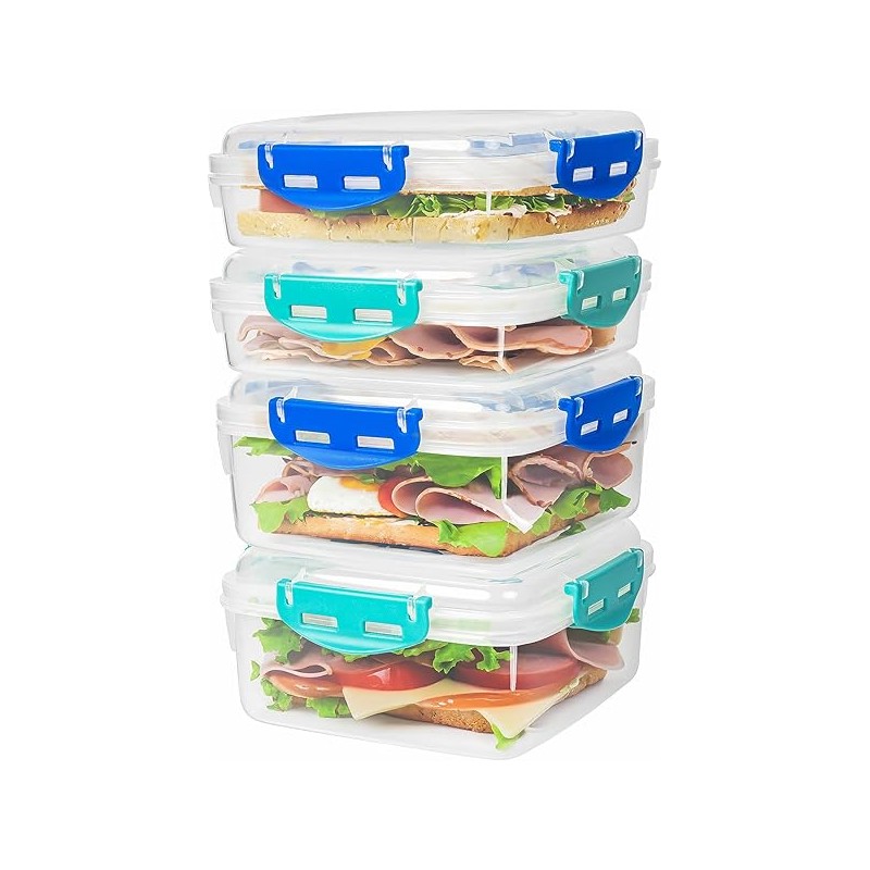 4 PCS Sandwich Containers - 100% Airtight & BPA-Free & Microwave & Dishwasher Safe Kitchen Storage Containers with Upgraded Snaps, 2 heightened Containers for Lunch Boxes and 2 normal version