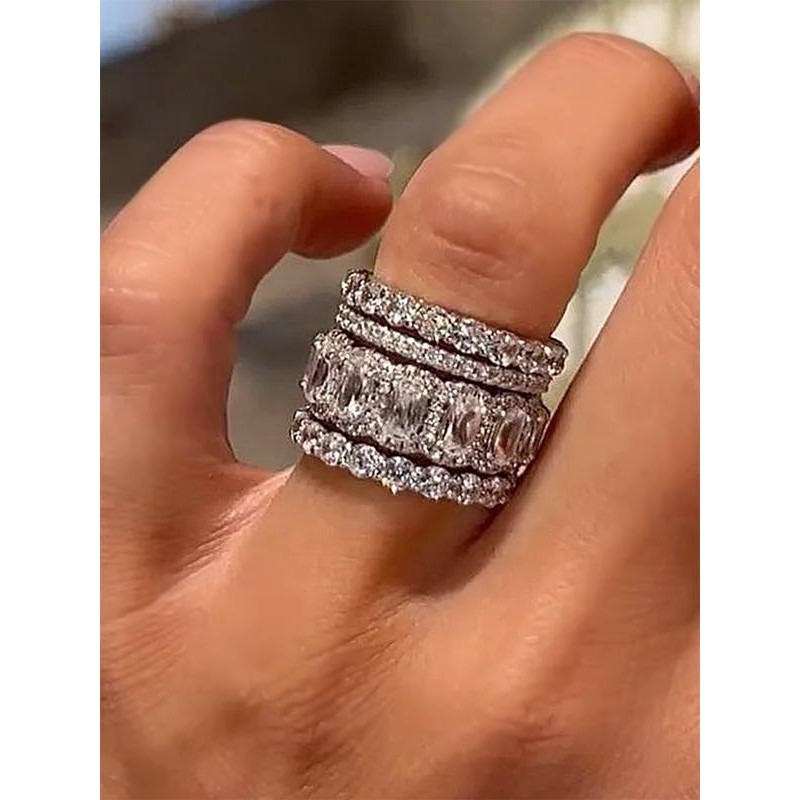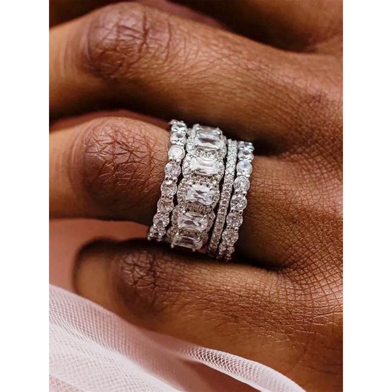 4 Pcs/Set Fashion Cubic Zirconia Ring For Women For Wedding Engagement Anniversary Party Jewelry Valentine's Day Gift:_Silver_8