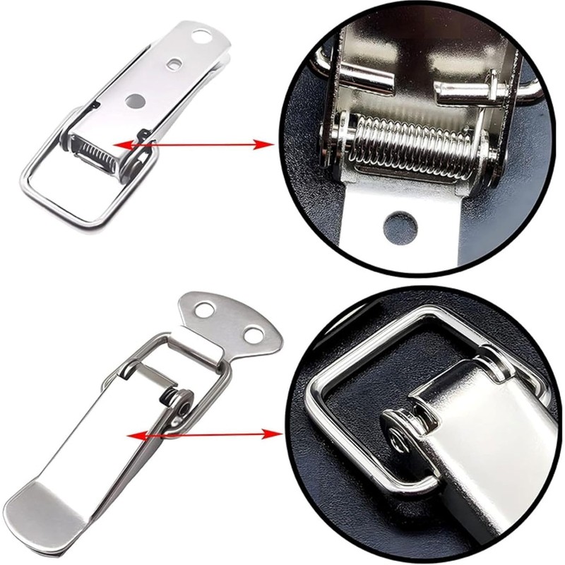 <p>The 4 PCS Toggle Latch (56mm) set is designed for use in cabinets, drawers, cases, toolboxes, and more. Made from high-quality stainless steel, these latches provide a reliable way to securely fasten doors, lids, or panels. The tension clasp design ensures a tight and secure hold, preventing accidental openings while providing easy access when needed. Crafted from corrosion-resistant stainless steel, these latches are built to last. The robust material ensures long-term durability, making them ideal for both indoor and outdoor use. Whether you're securing a toolbox or mounting a cabinet door, these latches will withstand frequent use and remain functional for years. These toggle latches are easy to install and can be used on a variety of surfaces, including wood, metal, and plastic. Their simple lever clasp design allows for quick attachment and detachment, providing flexibility for different types of enclosures. The latch does not require a lock hole, making installation even easier without the need for specialized tools. </p>