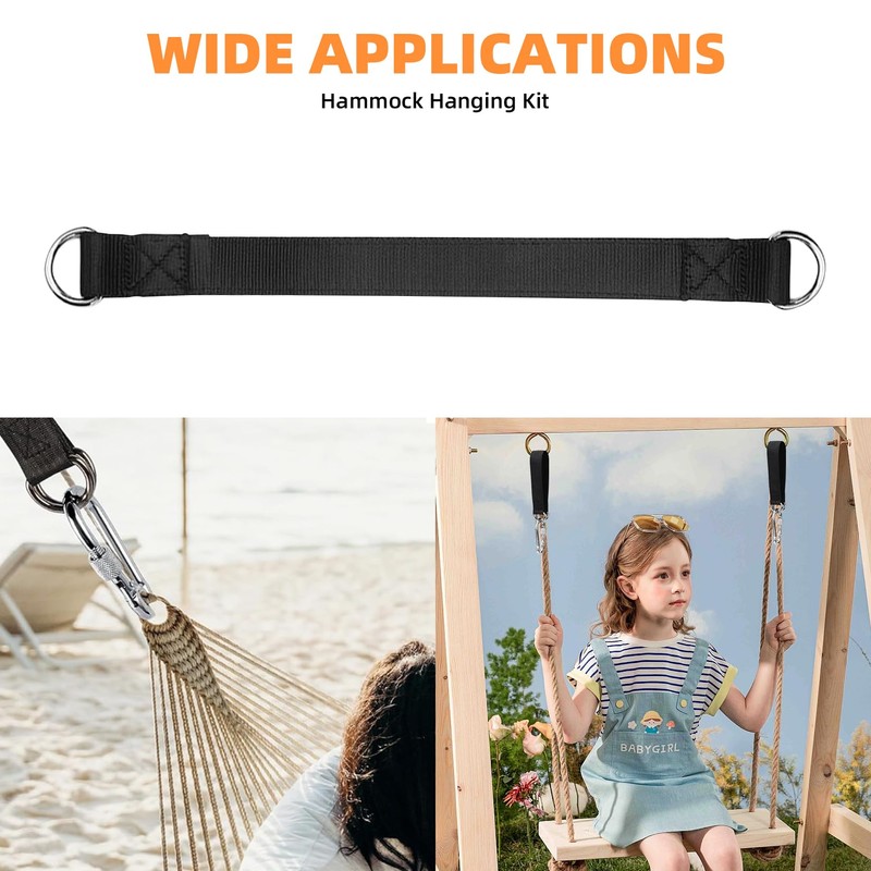 • eliable Load Capacity:Heavy-duty steel D-rings & carabiners securely fasten swings/hammocks without slipping. Supports stable weight capacity.
