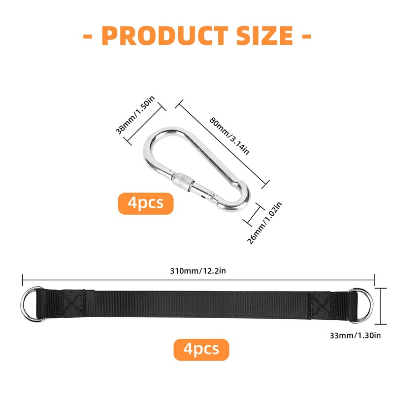 • Complete Kit:Includes 4 straps (30cm x 25mm), 4 carabiners & 4 D-rings. Perfect for indoor/outdoor relaxation.