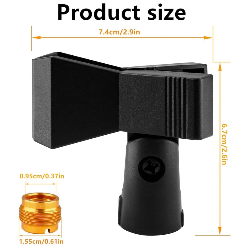 - 【Size】: The metal adapter nut measures approx,0.37 inch in diameter,and the microphone clip measures approx,7.4 x 6.7 x 3.9 cm/ 2.91 x 2.63 x 1.53 inch.