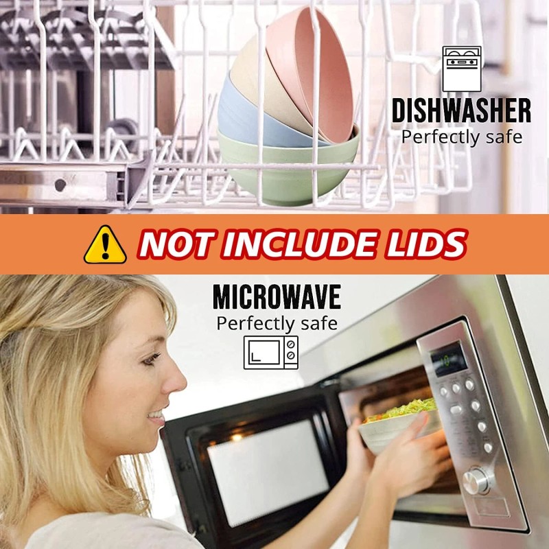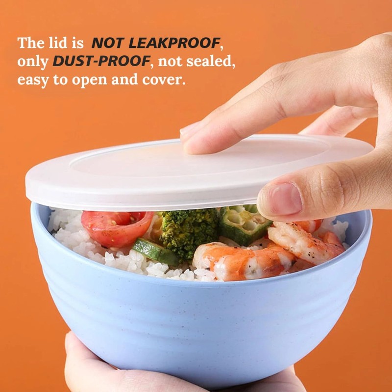 4 Pcs Wheat Straw Cereal Bowls with Dustproof Lid, Resuable Bowls For Kitchen