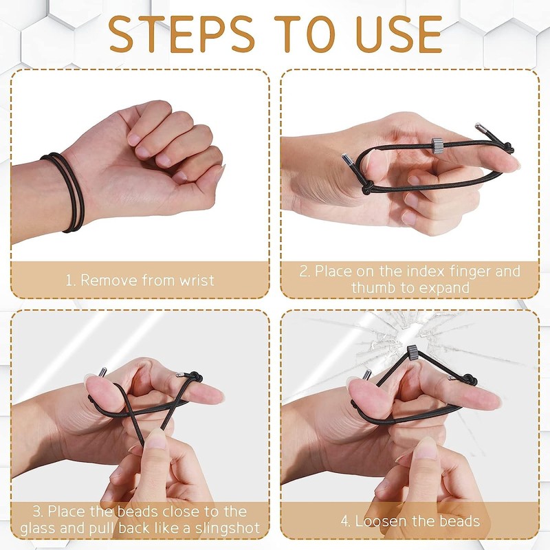 - Easy to use: Our window breaker bracelet is very easy to use, Steps 1: Remove from wrist. Steps 2 : Place on the index finger and thumb to expand. Steps 3 : Place the beads close to the glass and pull back like a slingshot. Steps 4 : Loosen the beads.