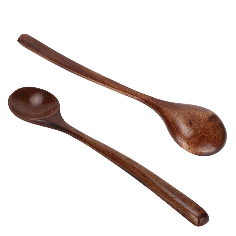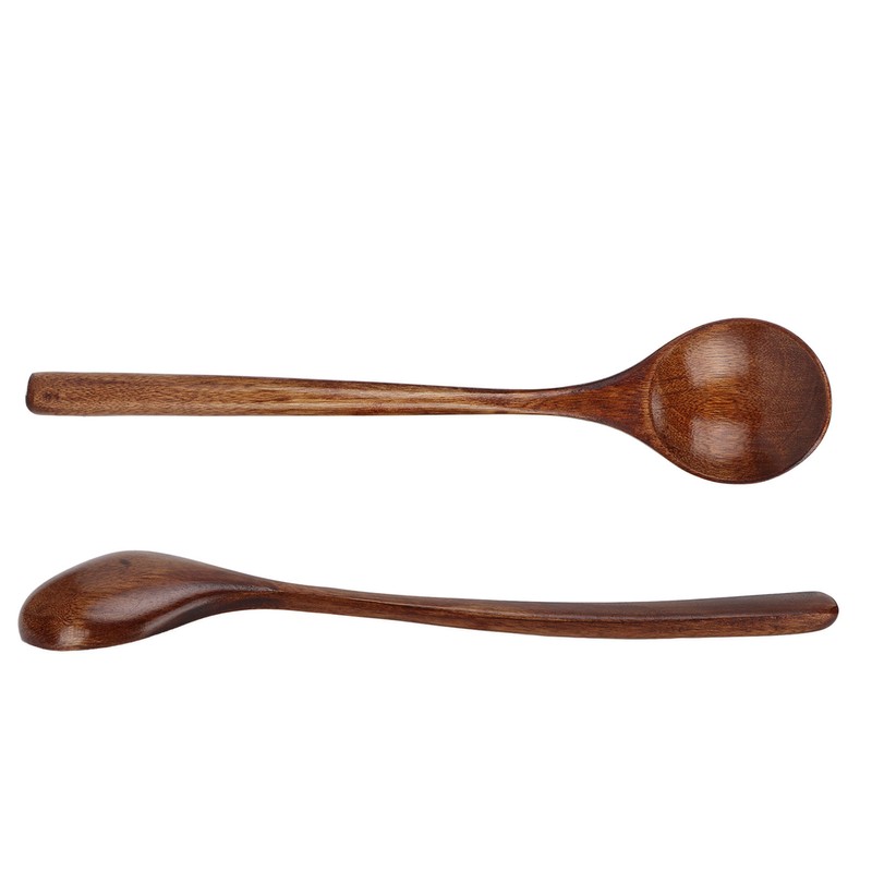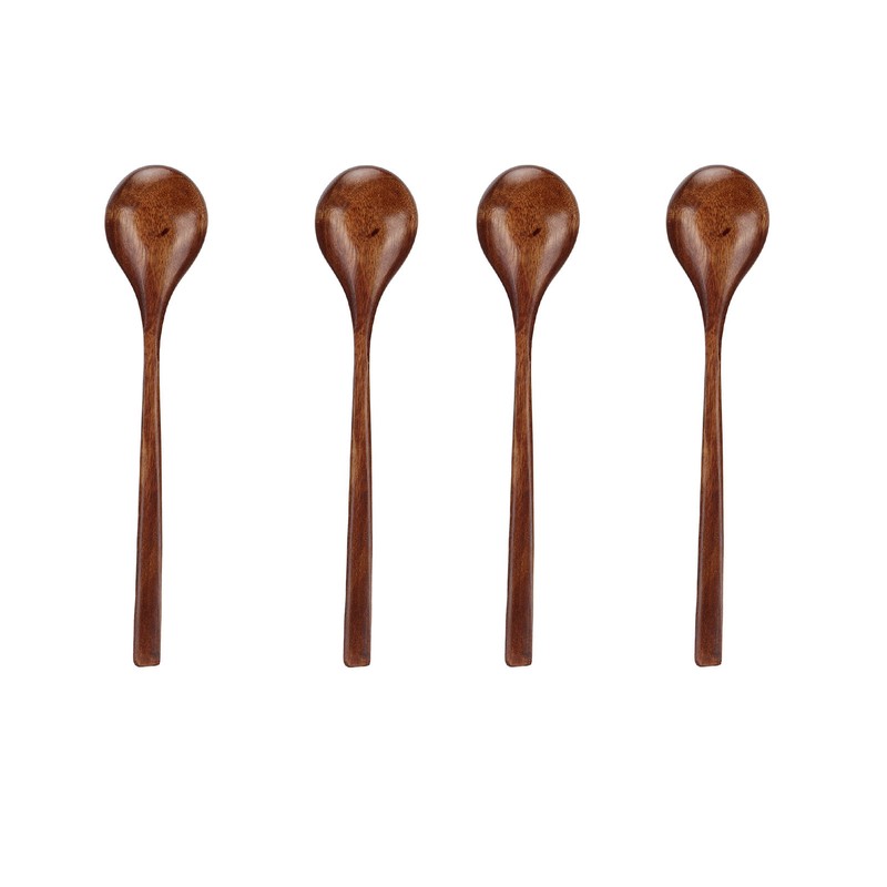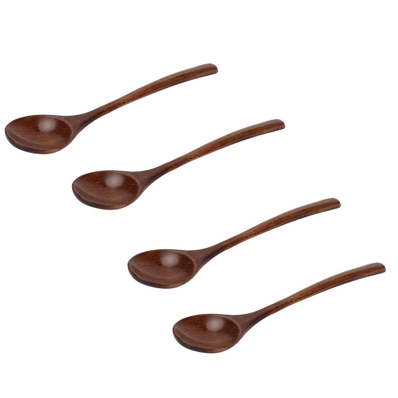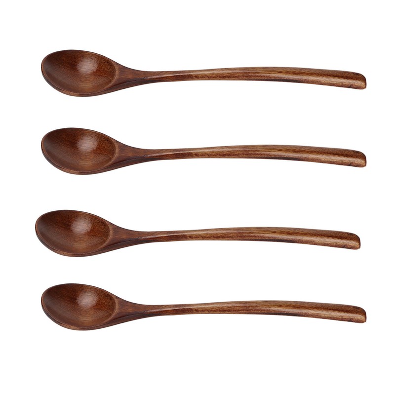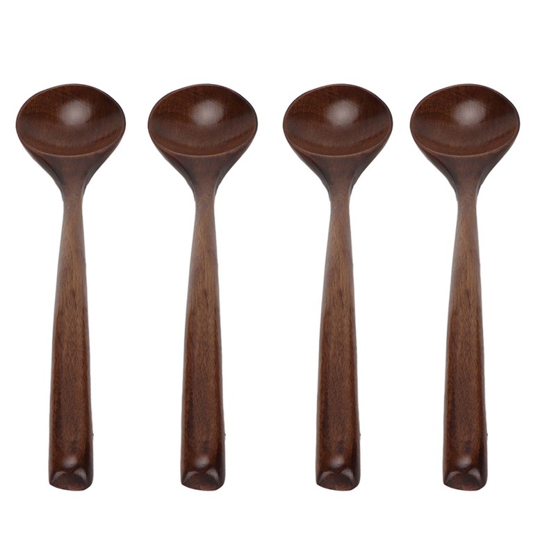 4 Pcs Wooden Spoon Exquisite Japanese Style Long Handle Large Mouth Wooden Soup Spoon Kitchen Serving Tableware