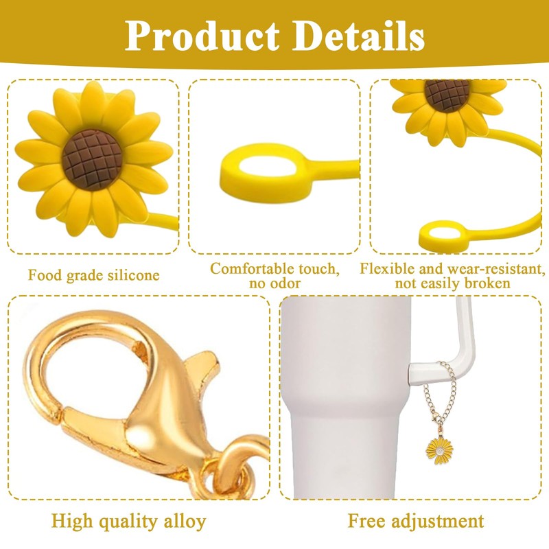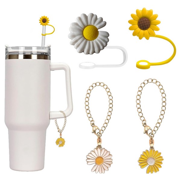 - Convenient to Clean: Yellow straw topper can effectively prevent dust or mosquitoes from entering your cup, and it is easy to put on and take off when using. Daisy flower pendant handle simple design ensures worry-free cleaning. Just wipe it gently with warm water and soap to clean it easily.