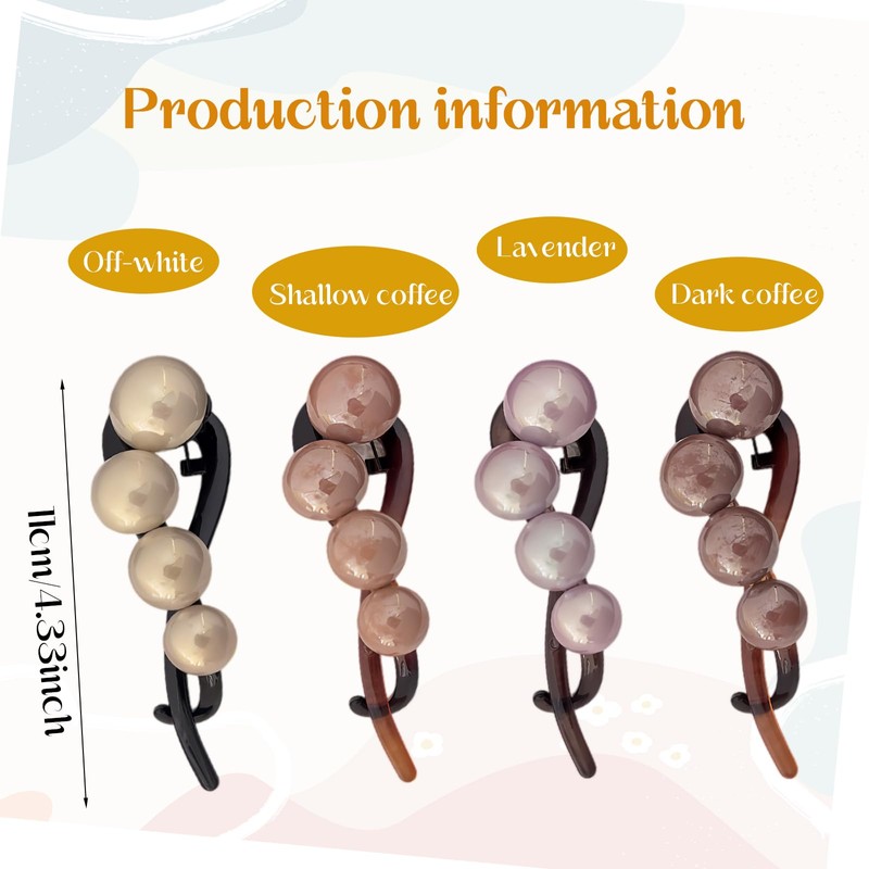 Wir präsentieren unsere 4er-Pack Perlen-Bananen-Haarspangen – perfekt für Frauen und Mädchen, die elegante und zuverlässige Haaraccessoires suchen. Die aus hochwertigem Kunststoff gefertigten Clips sind langlebig und rutschfest und bieten langanhaltenden Halt, ohne Ihr Haar zu schädigen. Ihr leichtes Design sorgt für Tragekomfort, sodass Sie sie den ganzen Tag tragen können, ohne sie zu bemerken. Der rutschfeste Griff bietet sicheren Halt und eignet sich somit ideal für schlichte Frisuren ebenso wie für aufwendige Hochsteckfrisuren.