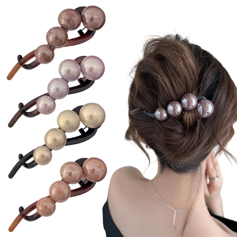 4 Perlen Haarspangen Damen, Elegante Perlen-Haarnadeln Französische Bananenspangen Haarklauen French Twist Hair Pin für Banana Clip Perle Haarspange Groß Haare Banana Pins Bananenclip mit Perlen