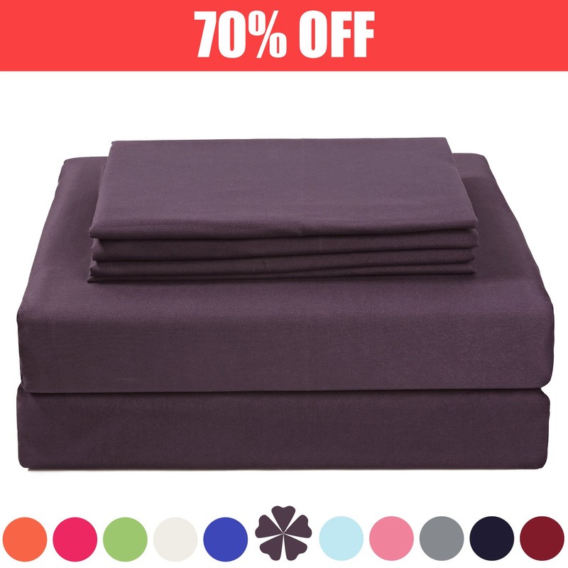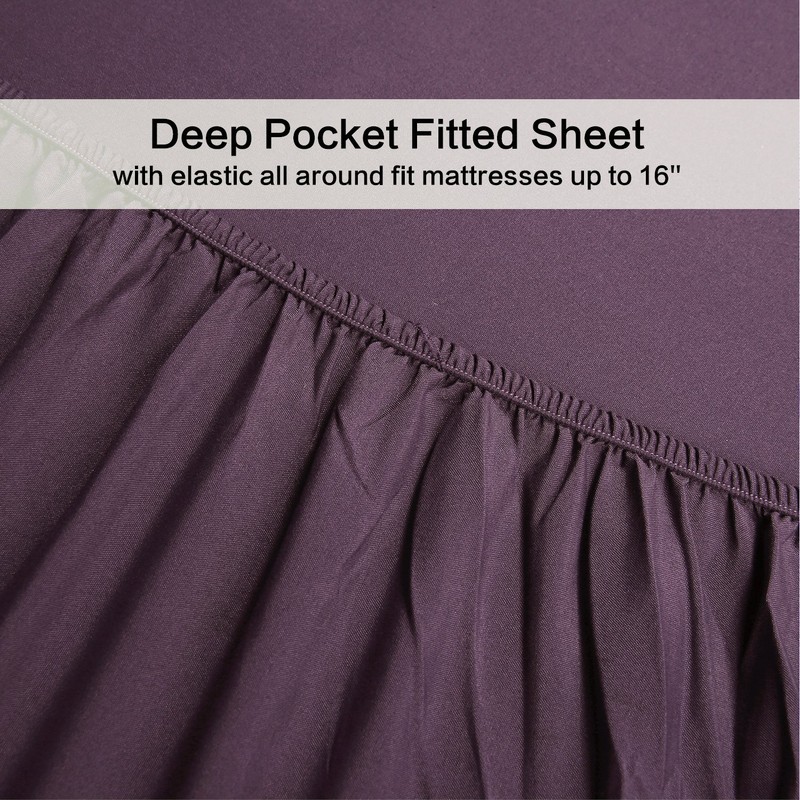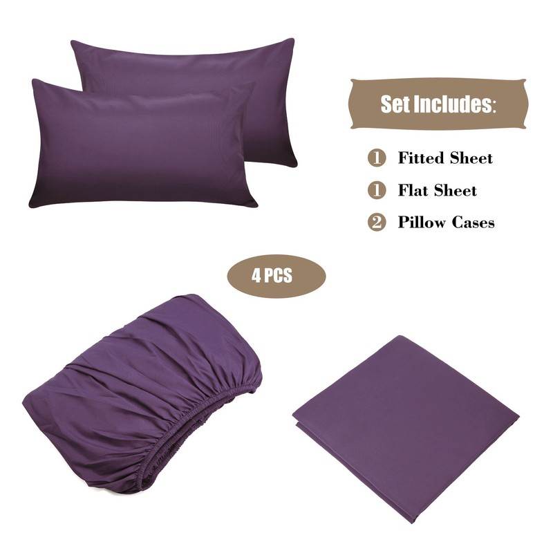 4 Piece Bed Sheets Set (Full,Purple) 1 Flat Sheet,1 Fitted Sheet and 2 Pillow Cases,Brushed Microfiber Luxury Bedding with Deep Pockets