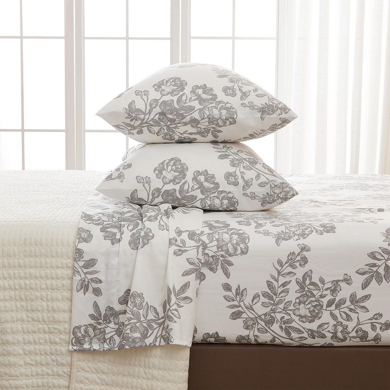 4-Piece Full Printed Microfiber Sheet Set - Ultra-Soft, Brushed Bedding Sheets & Pillowcases - Wrinkle & Fade Resistant, All-Season Bed Sheets for Bed (Toile - Grey)