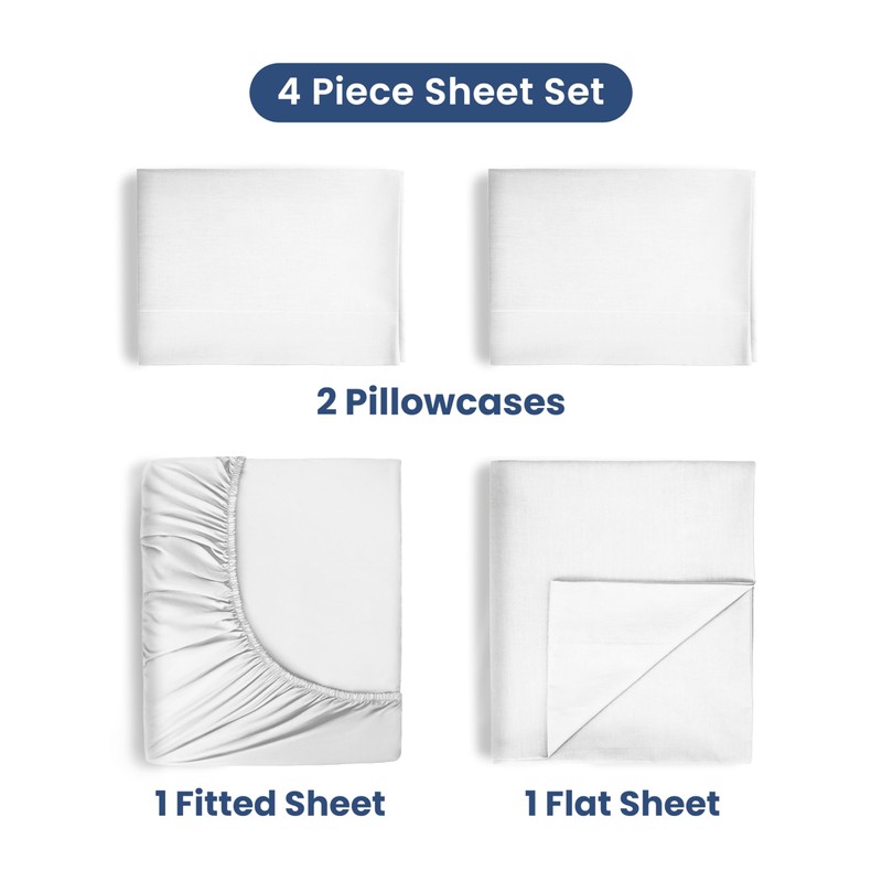 - 4-PIECE SHEET SET: If you’re looking for bedding sheets & pillowcases full of cozy softness, the king size sheets cotton fabric makes it an easy choice. This set includes 1 flat sheet (110”x104”), 1 fitted sheet (78”x80”) and 2 pillowcases (20”x40”).
