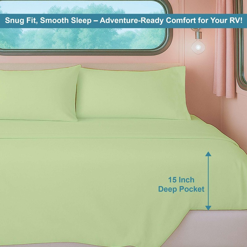 - STYLISH AND VERSATILE DESIGN - This versatile sheet set blends seamlessly with any RV, camper, or trailer interior, adding an elegant and functional touch to your travel sleeping space.