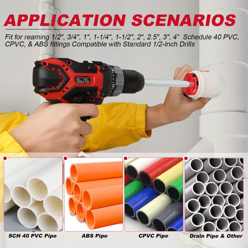 - 【Pro-Grade Efficiency】- Quickly and easily remove old pipe from solvent welded fittings, saving 50% time, product size matches the pipe OD, with a 1/2" hex shank that directly connects to different brands drills (no adapter required).