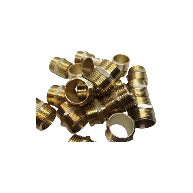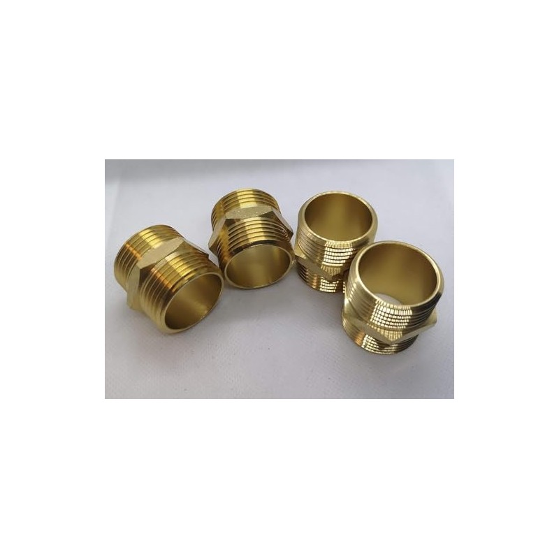 4-piece set brass double nipples, 1/2 inch male thread, robust and durable connection parts for pipelines, ideal for plumbing and DIY projects (1/2")
