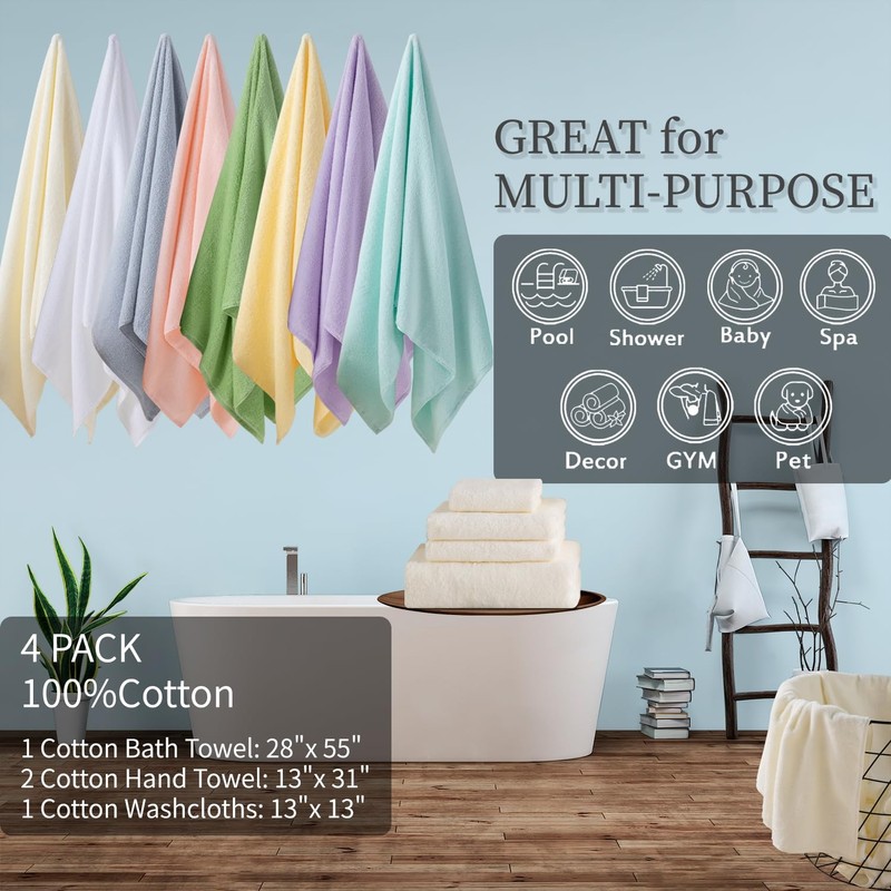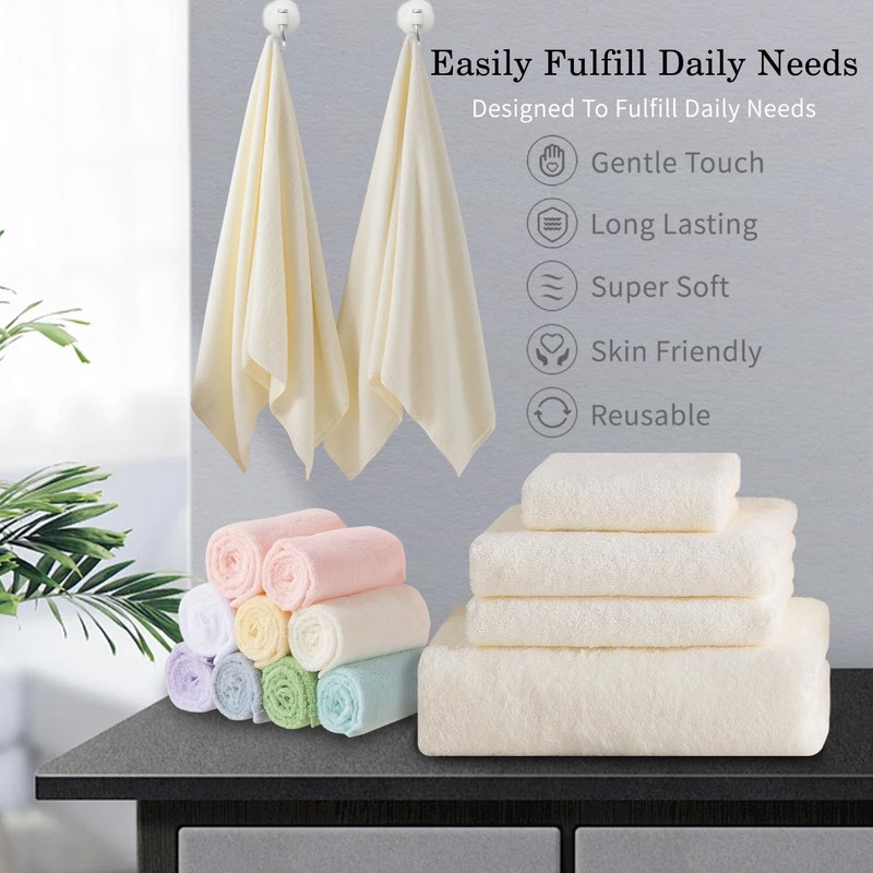 - ABSORBENT & QUICK DRYING:Wrap yourself in the cloud-like softness of premium zero-twist,long-staple cotton,we have used 600 GSM terry cotton in our bath towel set, which results in a soft, plush, and luxurious product. which is up to 2x more absorbent than even Egyptian cotton ensuring you'll always walk away feeling dry and refreshed after a shower. this lightweight and breathable cotton towel can be washed and reused hundred of times which remain soft after multiple wash and dry cycles.
