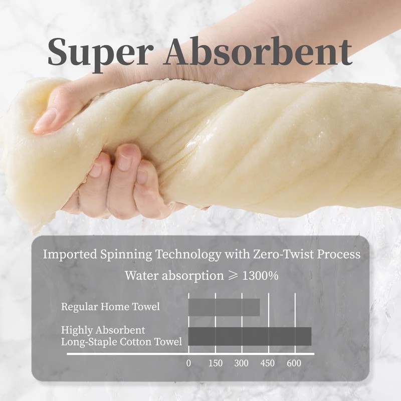 - LUXURIOUSLY SOFT & ULTRA PLUSH:Imported spinning technology with zero-twist process,softest combed cotton towel set,ring spun virgin cotton fibers (100% long-staple cotton) are spun and stretched,This creates finer, softer cotton fibers and, when made into yarn, is the most coveted type of yarn for high-end textiles. Low-twist combed cotton yarn is a perfect choice for the most absorbent and softest towels on the market- even more so than the finest Turkish bath towels.