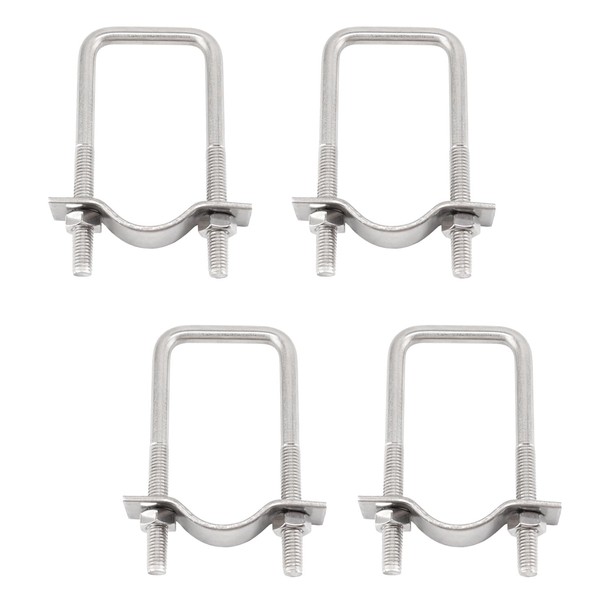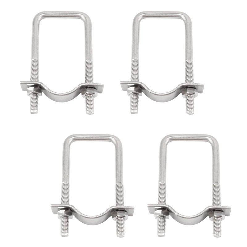 (4 Pieces) 6x45x90mm 304 Stainless Steel Square U Bolts Pipe Clamps with Plates and Nuts Tuble Buckle Clamp