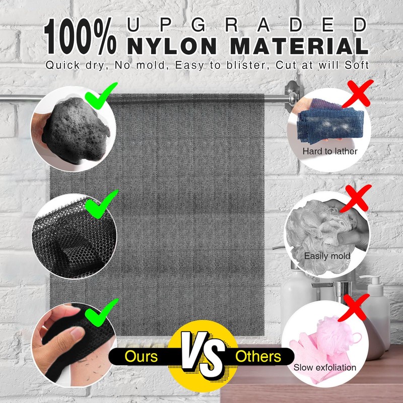 - Versatile: Suitable for use on the face, body, and feet to 【QUALITY MATERIAL】Made from a reliable new type of nylon, the African Net Sponge ensures long-lasting use. Its lightweight design promotes a rich soap lather, while its porous nature allows for quick drying, enhancing your bathing experience.remove dead skin cells and improve circulation.