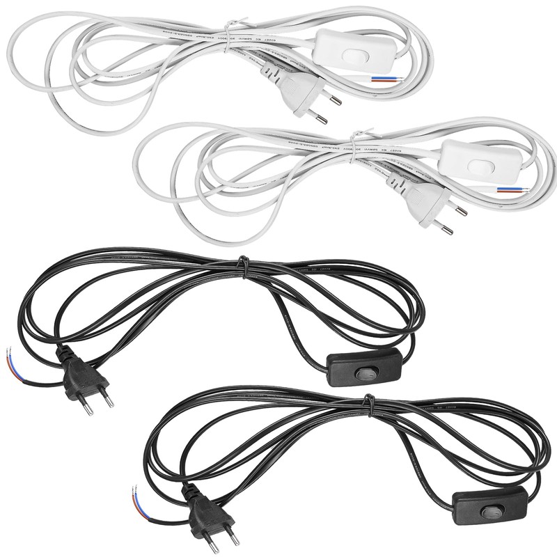 4 Pieces Cable with Switch, 3 m Connection Cable with Plug, Lamp Cable with Switch and Plug for Lamps, Table Lamps, Floor Lamps (White + Black)