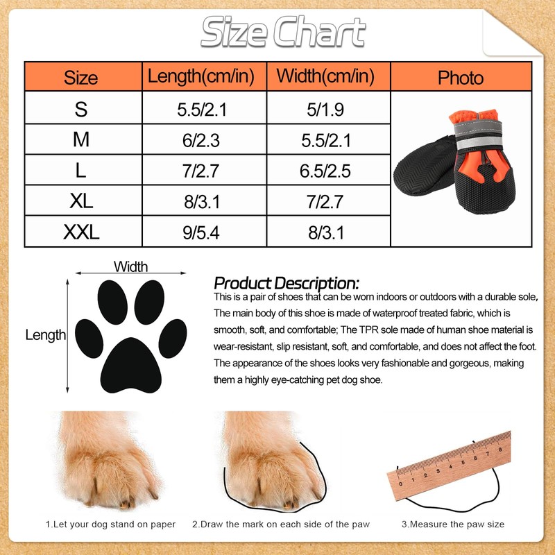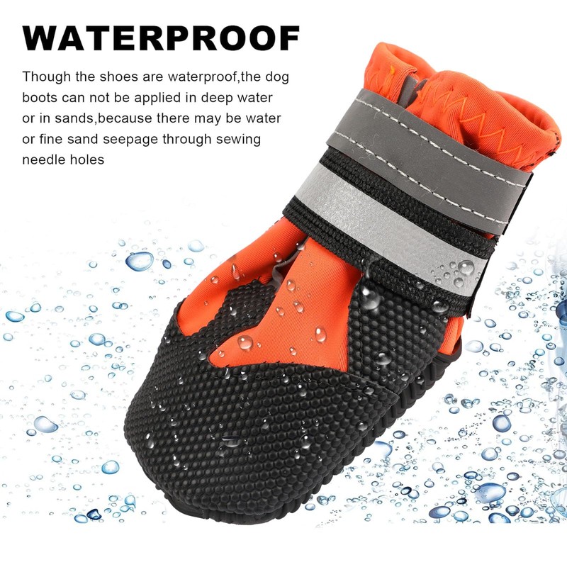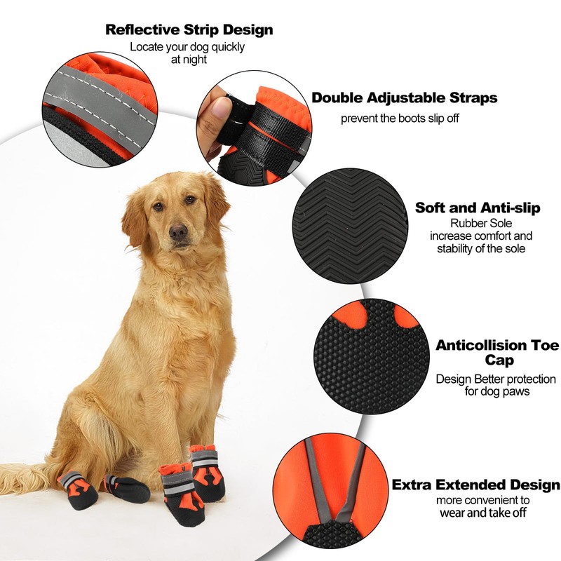 4 Pieces Dog Boots Paw Protector,Waterproof Dog Shoes with Reflective Straps,Adjustable Washable Non-Slip Dog Shoes,Dog Boots for Injured Paws,Orange Outdoor Paw Protectors Dog Shoes(L)
