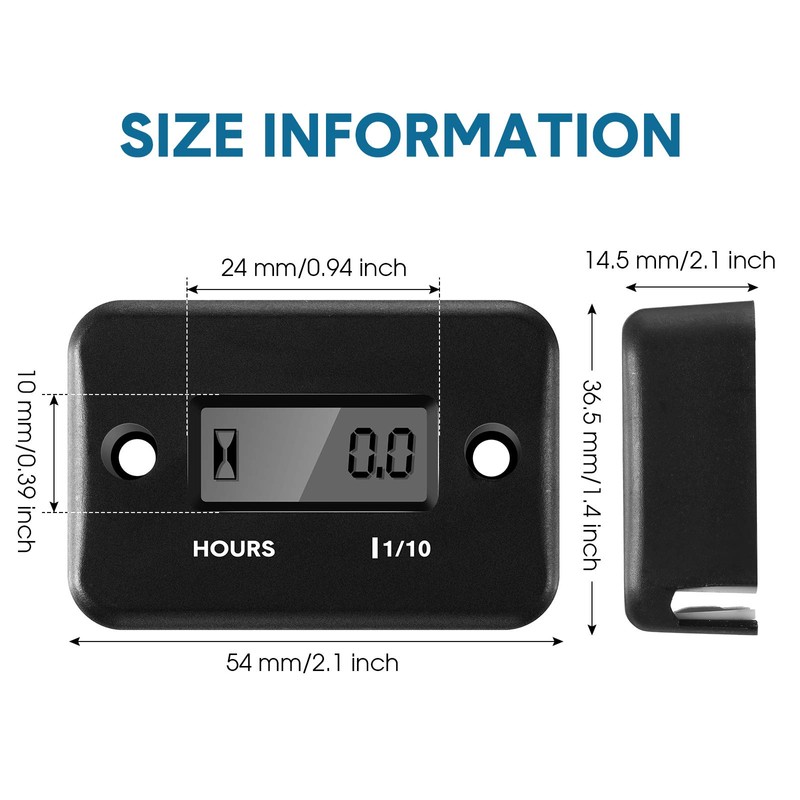 Hour meter: approx. 2.1 x 1.5 x 0.6 inch/ 5.4 x 3.7 x 1.5 cm