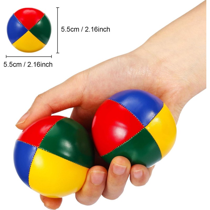 - Juggling balls: you will receive 4 pieces bright colored juggling balls, the size is about 2.17 x 2.17 inches/ 5.5 x 5.5 cm, they are easy to carry and store, and the moderate size allows you to throw or play easily