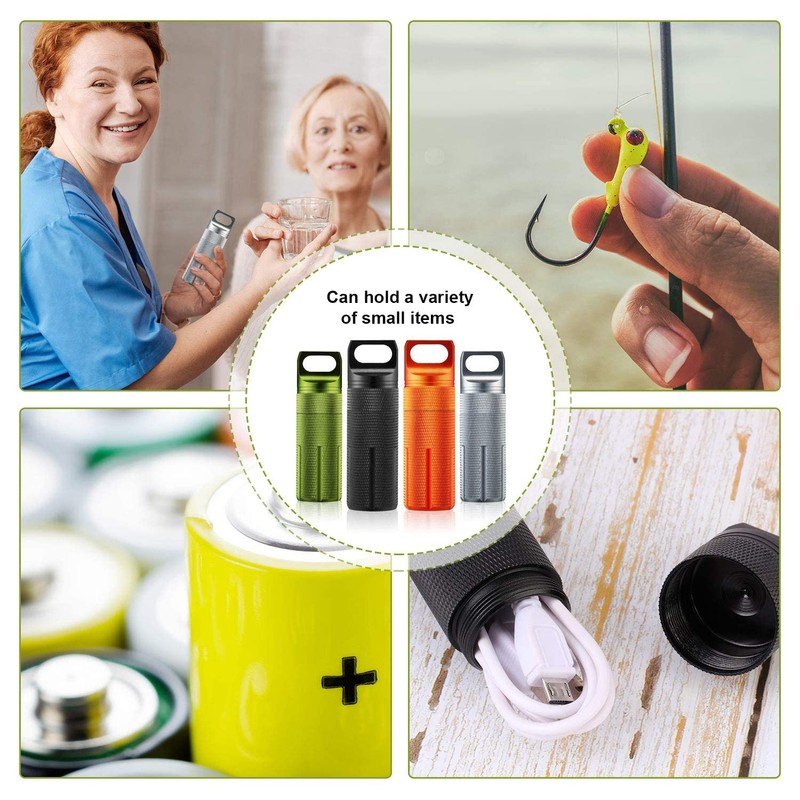 4 Pieces Portable Pill Case Waterproof EDC Pill Container Airtight Keychain Pill Case Travel Pill Bottle to Hold Supplements for Outdoor Camping Travelling (Black, Orange, Army Green, Gray)