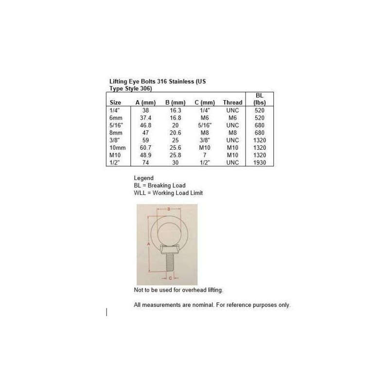 4 Pieces Stainless Steel 316 3/8" Lifting Eye Bolt 3/8" UNC Marine Grade Thread Length 15mm (4-PK Eye Bolt 3/8")