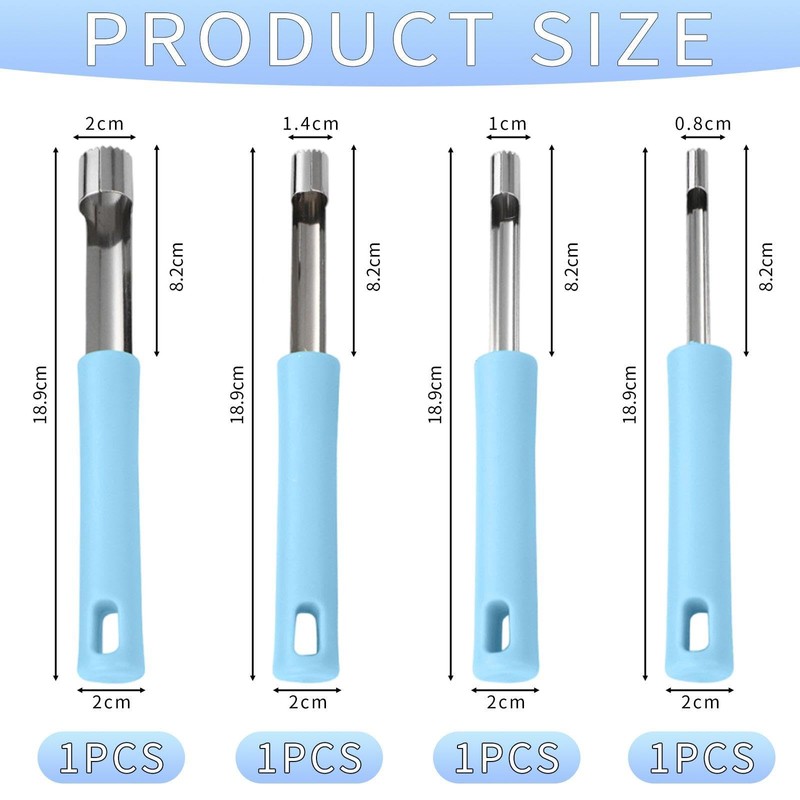 - 【Product Content】You Will Receive 4 Pieces Of Stainless Steel Core Collectors With Dimensions Of 18.9*2Cm, 18.9*1.4Cm, 18.9*1Cm, 18.9*0.8Cm Respectively. The Color Is Blue, Which Is Suitable For Fruit Core Removal And Baking.