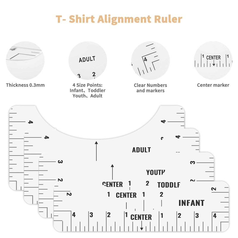 - This T-shirt ruler guide is easy to use. Line Simply align the ruler with the collar and centre your design before pressing it.