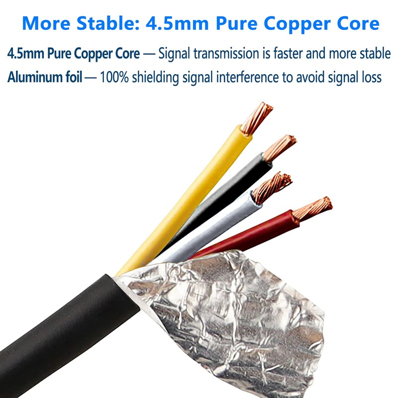 - 🌟4 Pin Dash Cam Rear View Backup Camera Extension Cable:12 strands of pure copper core + aluminum foil shielding,100% shielded offering superb protection against EMI/ RFI interference