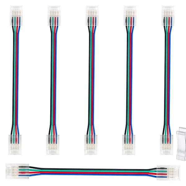 4 Pin RGB Led Connectors for Strip Lights 10mm Wide Unwired Gapless Solderless Transparent 22Awg Extension Wire Quick Connectors Adapter(6 pcs)